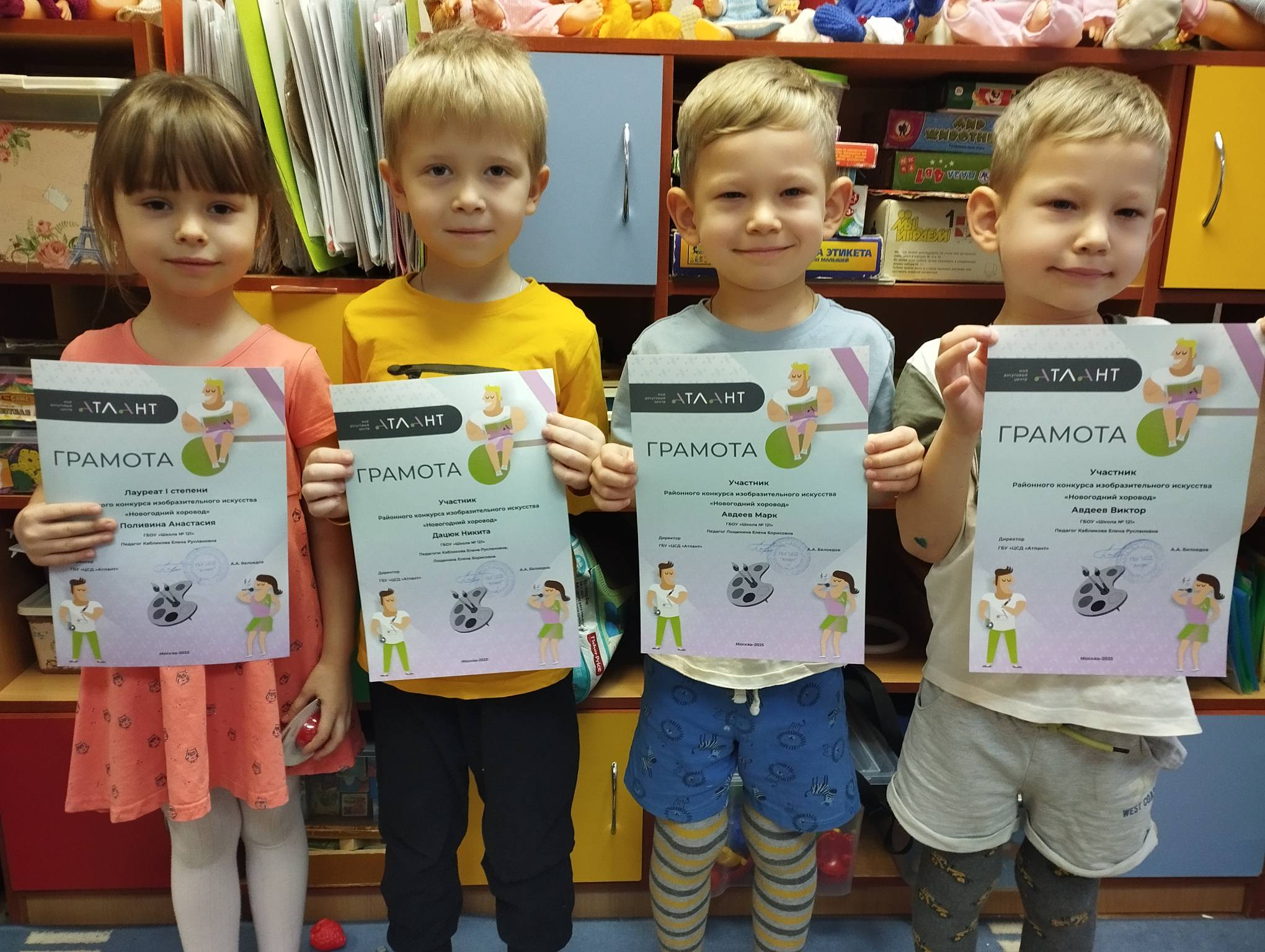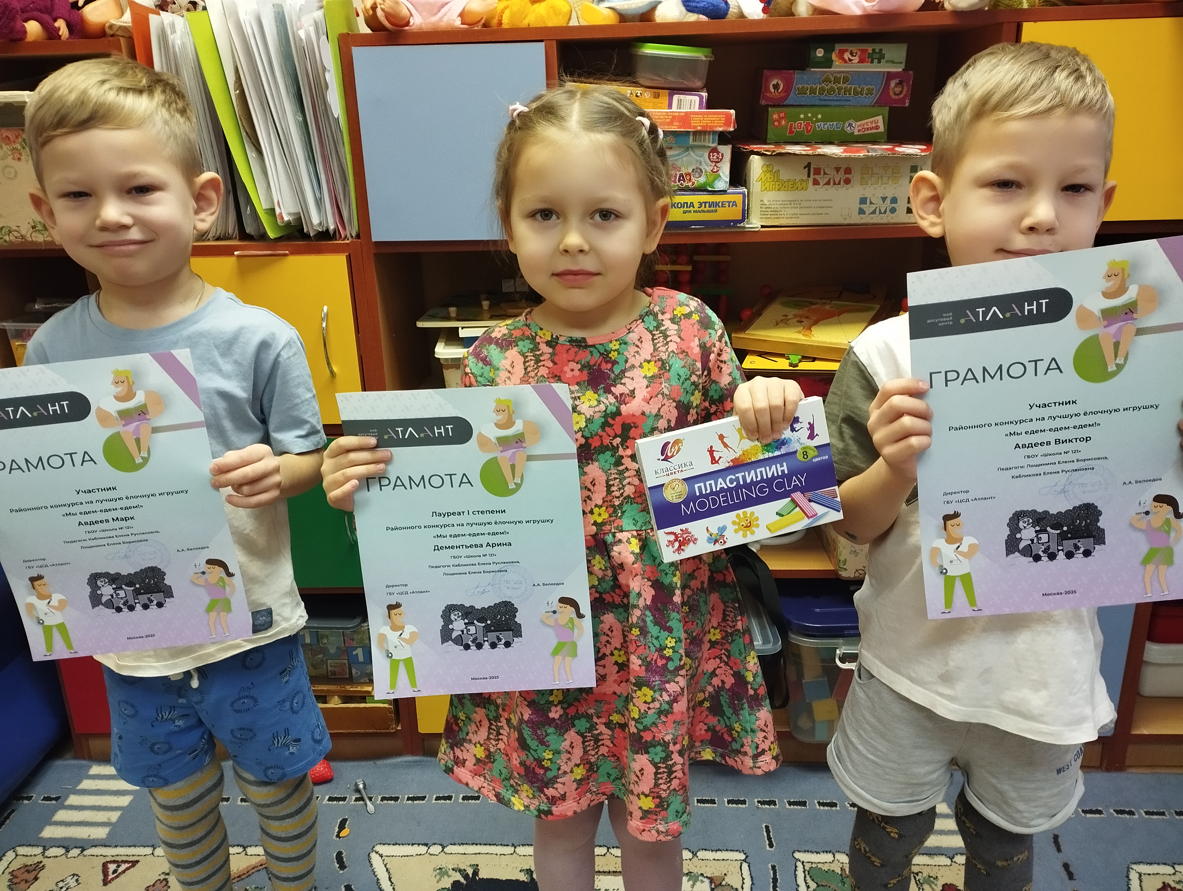 Ребята старшей группы 60А "Почемучки" приняли активное участие в районных конкурсах, организатором которых является Центр досуга и спорта "Атлант". Дошкольники смастерили оригинальные елочные игрушки на тему " Мы едем, едем, едем". Арина Д. стала Лауреатом 1 степени.